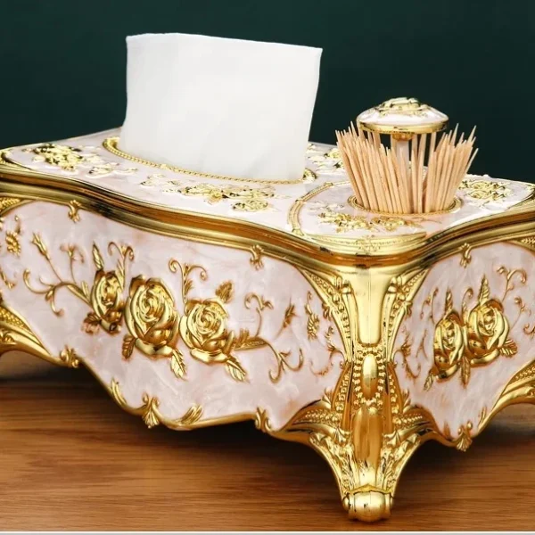 Antique Pvc Tissue Napkin & Toothpick Holder White and Gold