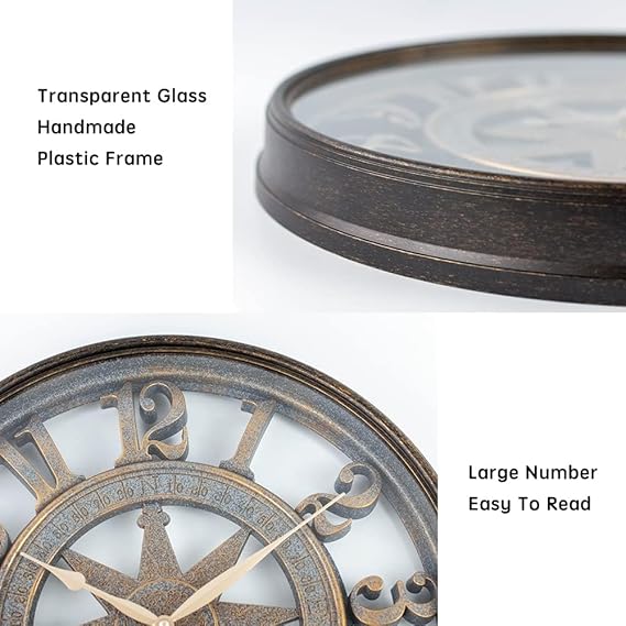 Antique Vintage Roman Numeral Wall Clock | Silent Quartz Large Wall Clock for Home Décor