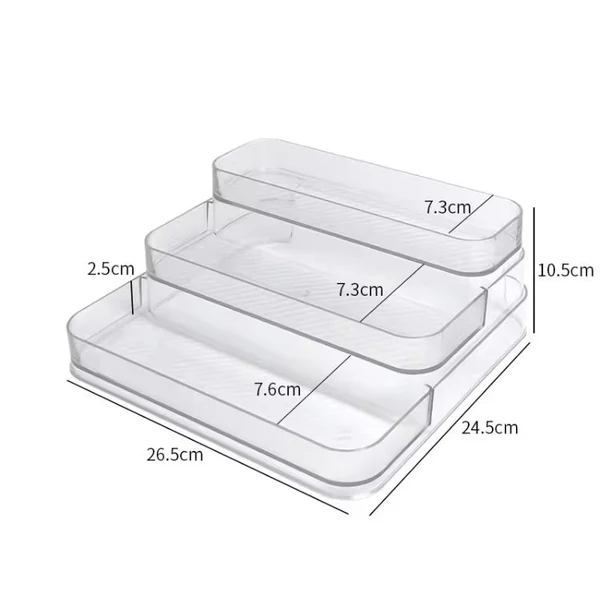 Organize your perfumes and makeup with ease using our 3 layer organizer. The tiers provide ample space to neatly store your products, making it easy to find what you need. Keep your vanity clutter-free and save time getting ready with this functional and stylish organizer.