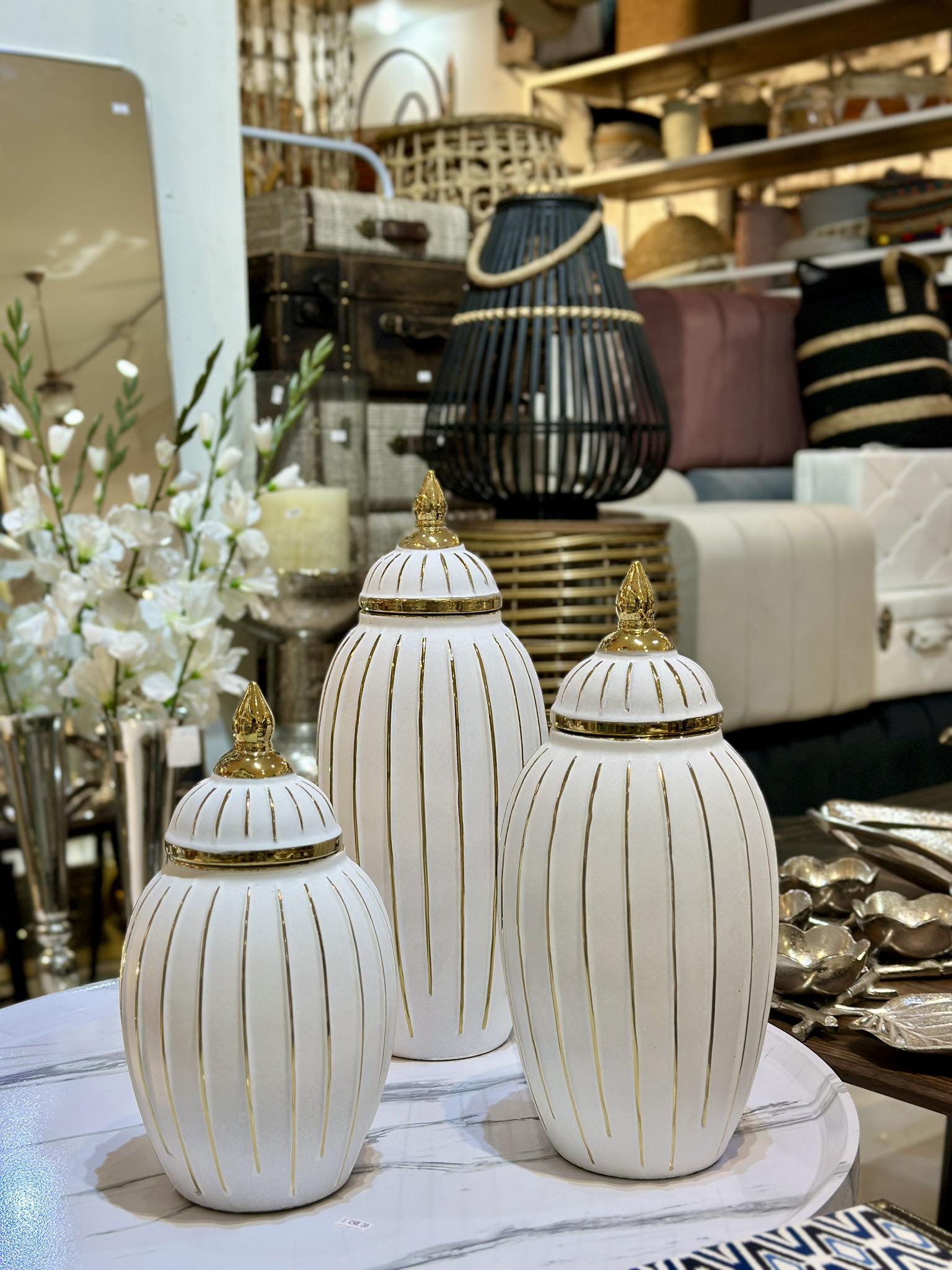 Be the first to review “Imperial White & Gold Ceramic Ginger Jar Set – Premium Home Décor”