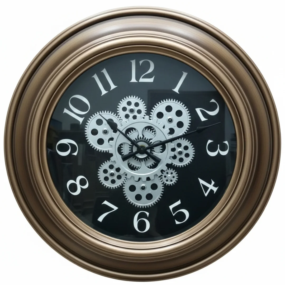 ​Make a statement with the Obsidian Gearworks. Featuring a deep matte black face and a striking silver skeleton core, this clock is the ultimate blend of vintage charm and modern industrial design. Its wide, bronze-toned gallery frame adds a layer of classic warmth, making it the perfect centerpiece for a sophisticated office or a moody living room.