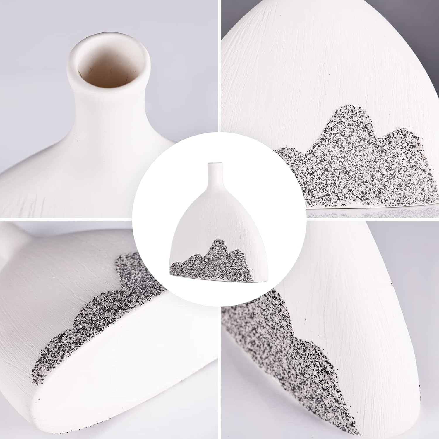Modern Textured White Art Vase – Mountain Design (2 Pc Set)