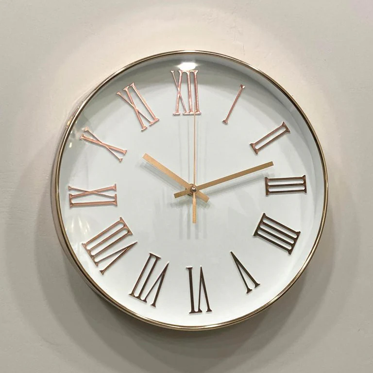 • office with this beautifully crafted wall clock. Its sleek design not only tells time but also elevates the look of your space. Built with high-quality materials and equipped with a silent sweep movement, this clock ensures accurate timekeeping without any ticking noise. Perfect for bedrooms, living rooms, kitchens, or offices, it’s the ideal blend of style and functionality.Material: Durable Plastic body with rust-resistant finishDial Size: 14 Inches (Diameter)Clock Face: Large dial with bold numerals and elegant clock handsPower: Battery-operated (AA batteries, not included)Ideal For: Home decor, office styling, photo shoots, or vintage collections