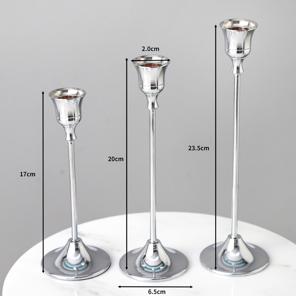 Set of 3 Silver Chrome Metal Taper Candle